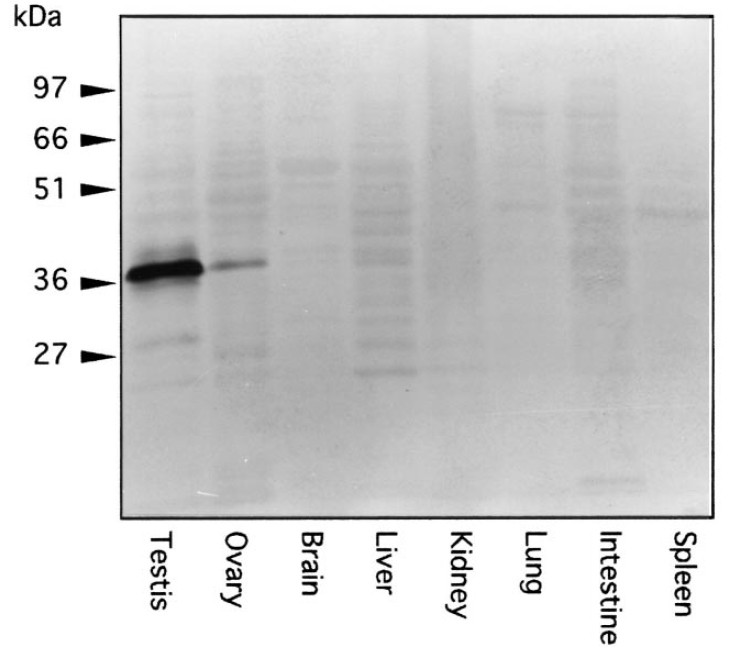 Fig. 1. Anti-Xdazl immunoblots of extracts from adult tissues (0.66 mg).
