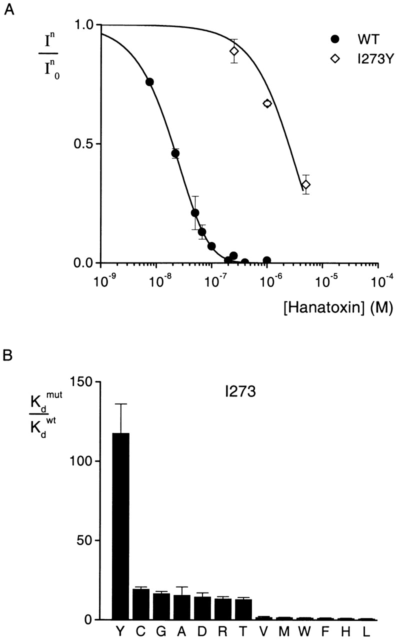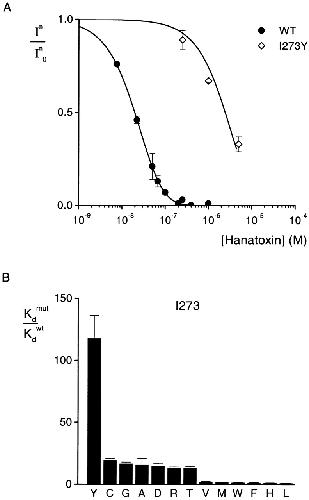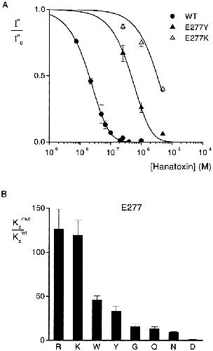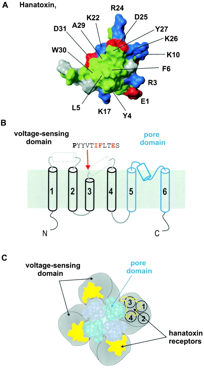 Swartz, Mapping the receptor site for hanatoxin, a gating modifier of voltage-dependent K+ channels. 1997, Pubmed