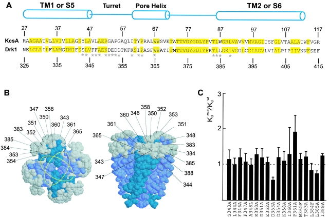 Stampe, Intimations of K+ channel structure from a complete functional map of the molecular surface of charybdotoxin. 1994, Pubmed