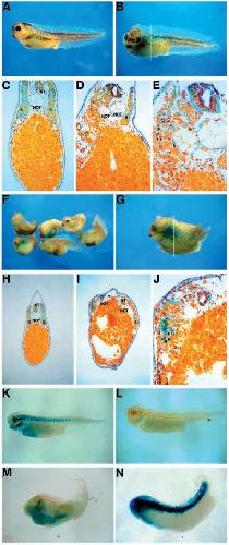 Hex-lVP2 RNA injected into two dorsal blastomeres at the 4-cell stage. (K) b-galactosidase and Hex-lVP2 RNA injected two dorsal animal