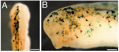 views of the embryos at stage 24 (A) and stage 32 (B), with the anterior to the left. Weak contactin signals (arrowheads) are detectable in