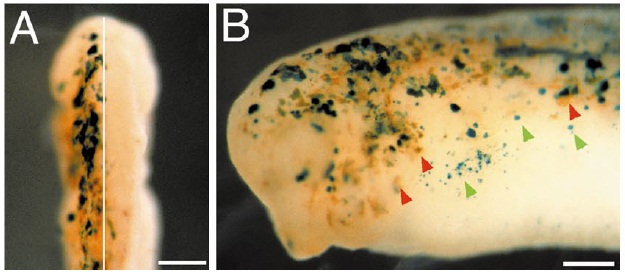 patches expressing either b-galactosidase (green arrowheads) or contactin (red arrowheads) alone. Scale bar, 250 mm.