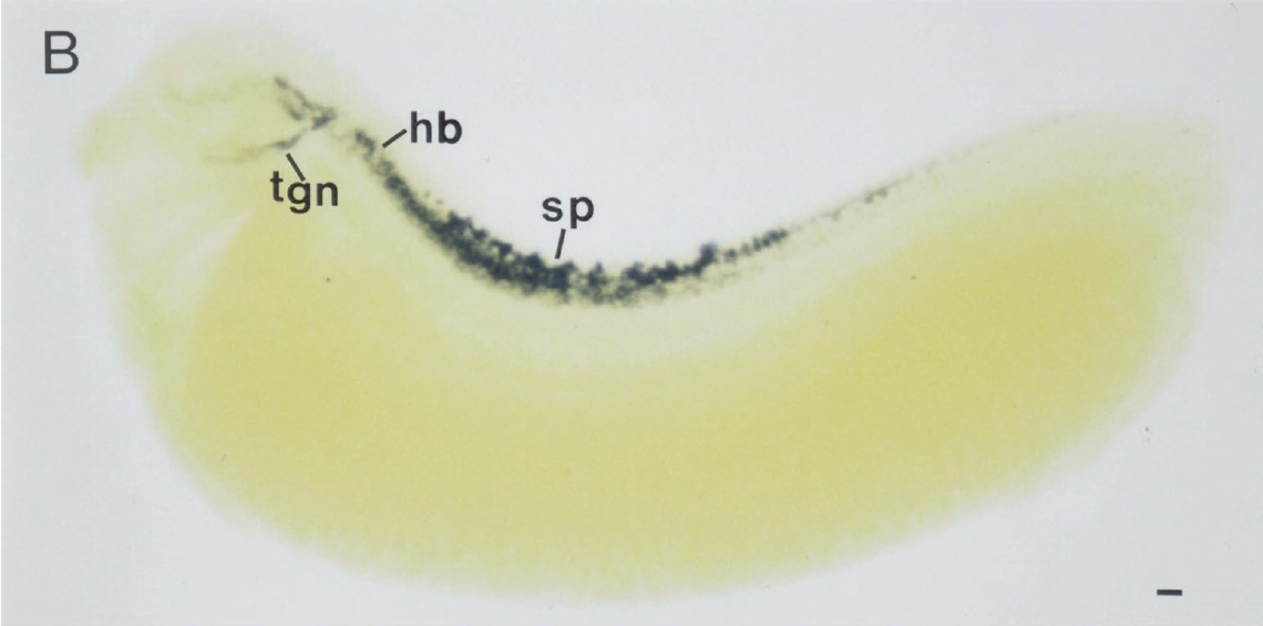 ventral fascicles (vf) in the spinal cord section (D). hb, hindbrain; nc, notochord; sp, spinal cord; tgn, trigeminal nerve. Scale bars, 100 mm.