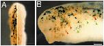 showing mosaic patterns of b-galactosidase (blue) and contactin (brown) expression. The mosaic patterns largely overlap, but there are also