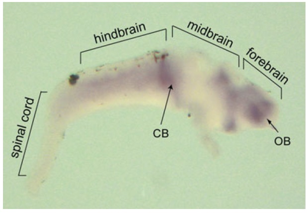 Fig. 4. Whole-mount in situ hybridization of Fmr1 in tadpolebrain. The