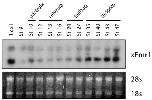 Fig. 2 (Left). Northern blot analysis of Fmr1 expression during Xenopus