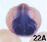 rpl 32 (ribosomal protein L32) gene expression in Xenopus laevis embryo, assayed via in situ hybridization, NF stage 22, anterior view, dorsal up.
