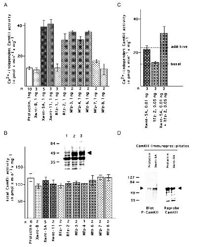 in Xwnt-5A injected embryos. Xenopus embryos were injected with prolactin or Xwnt-5A RNAs as in A, then CamKII was immunoprecipitated with