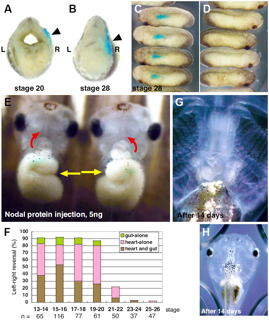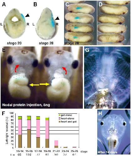 the right-side injection was scored. Nodal injection fully reversed the left-right axis of