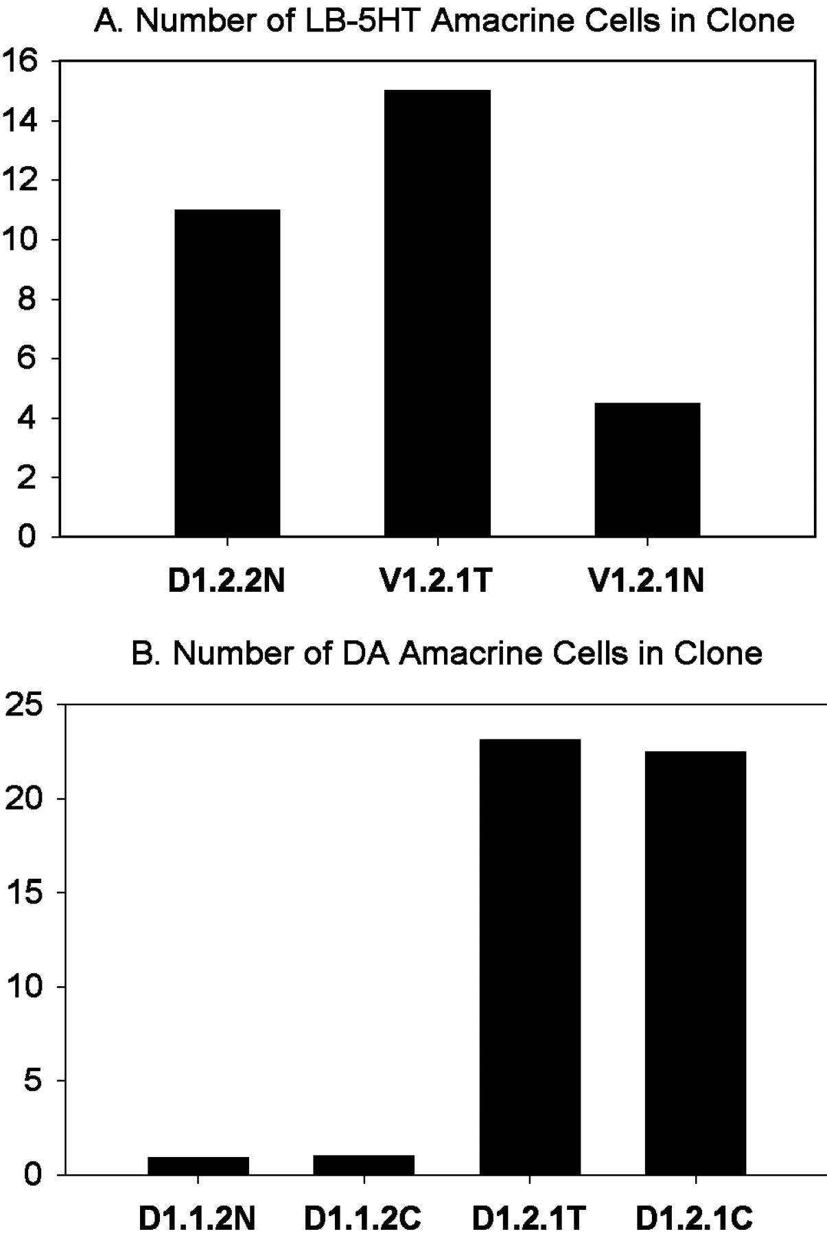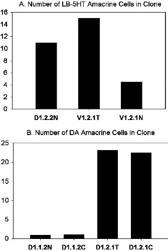 Three types of serotonin-containing amacrine cells in tadpole retina have distinct clonal origins.