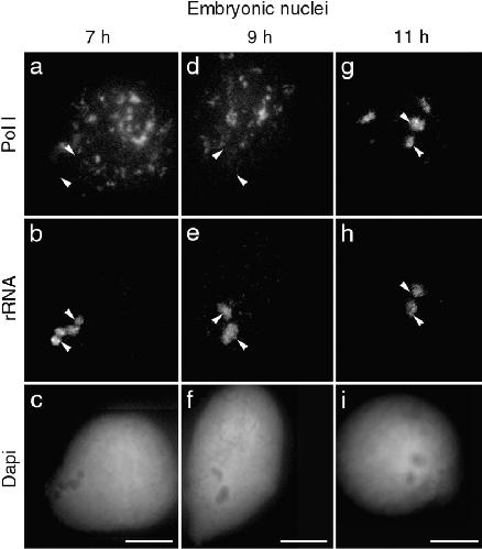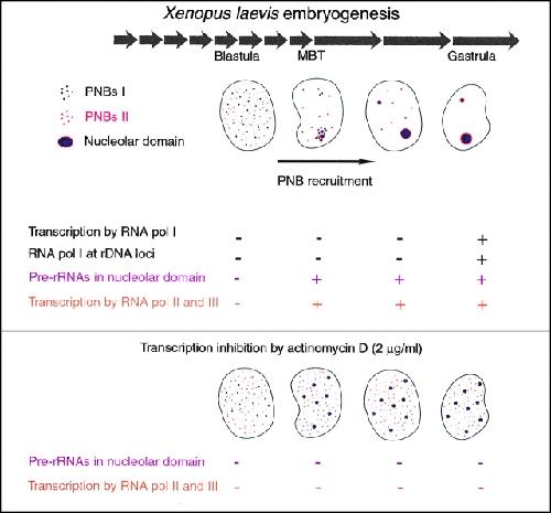 Verheggen, Presence of pre-rRNAs before activation of polymerase I transcription in the building process of nucleoli during early development of Xenopus laevis. 1998, Pubmed , Xenbase