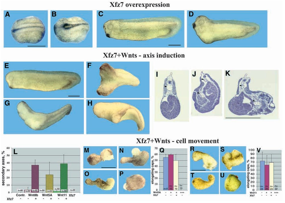 Wnt5A or Wnt11 in the induction of a secondary axis. (M-Q) Coinjection of Wnt5A and Xfz7 does not block activin-induced elongation of