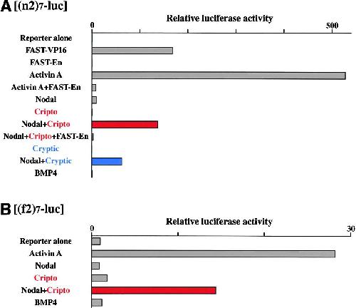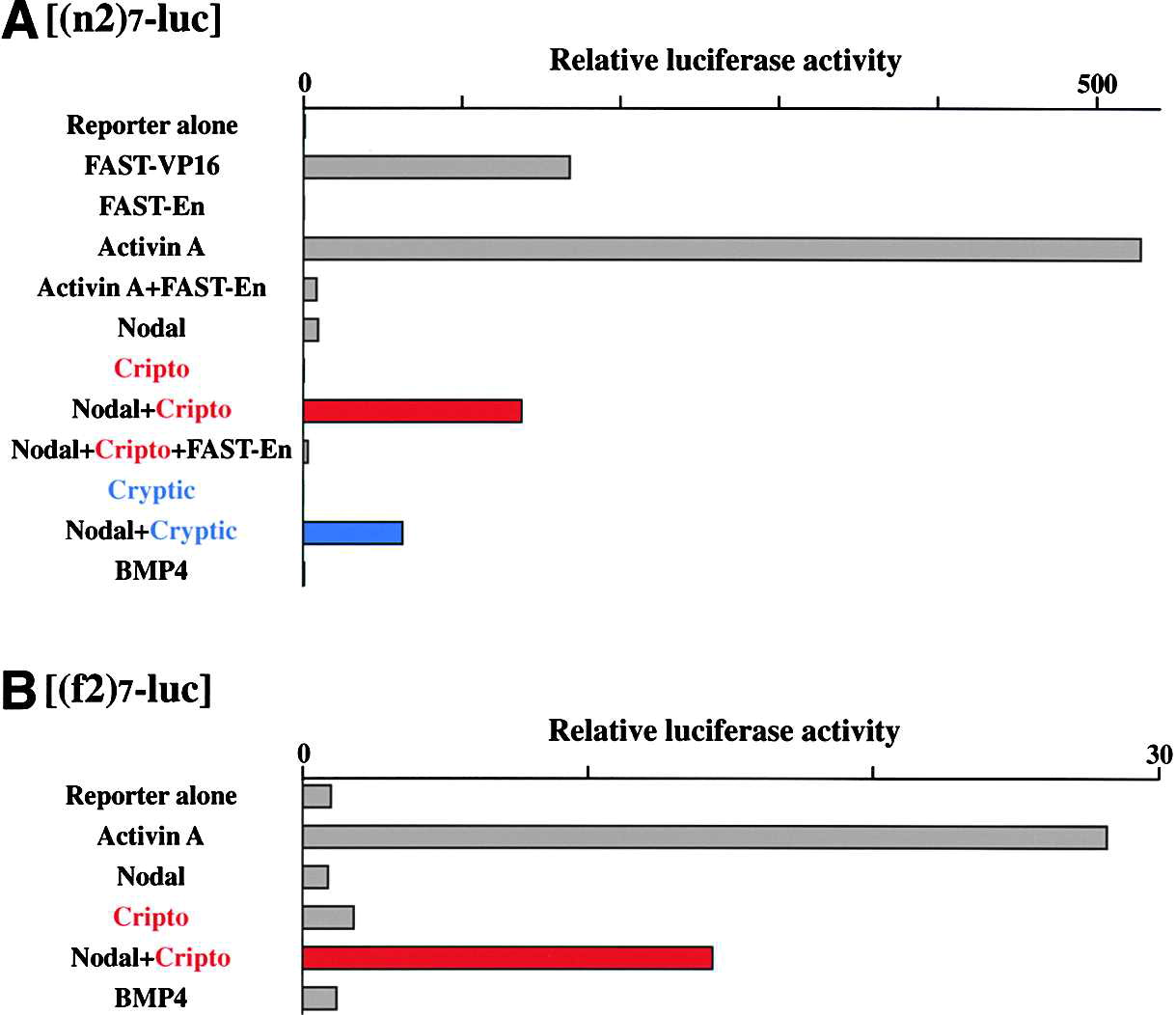 Activation of nodal and lefty2 ASE Elements by FAST2 and TGFβ or by Activin