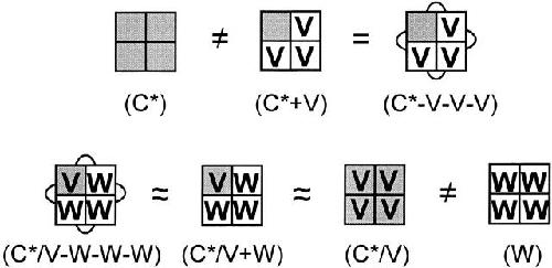 Figure 6. Cooperativity in late activation transitions. Diagram illustrates the main results of the L382V experiments. (Top) S4 gating of the labeled reporter subunit (C*) in heterotetramers containing three L382V subunits (V), obtained either by coinjection (middle) or by expression of the linked tetramer (right), is different from that of the same subunit in the homotetramer C* (left). (Bottom) The labeled L382V subunit (C*/V) behaves independently of the subunits with which it is assembled, since gating of C*/V coassembled with three W subunits, both in monomer coinjection (C*/V+W) and in linked tetramer (C*/V-W-W-W) experiments, is not different from gating of the C*/V homotetramer. The apparent uncoupling of a subunit from the cooperative influence of its neighbors by the L382V mutation suggests that a wild-type–like labeled subunit coassembled with three L382V subunits is voltage shifted because of the loss of wild-type cooperative interactions.
