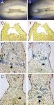 Fig. 5. Removal of notochord at stage 13-14 results in the failure of hypochord development. (A) Stage-14 embryo showing removal of notochord. Note that the endodermal cell layer is intact in this embryo. (B) Embryo with notochord removed showing clear damage to the endodermal layer (arrowhead). (C,D) Transverse sections through embryos following notochord removal, showing intact and damaged endodermal cell layers, respectively. Only embryos showing an intact endodermal layer were assayed in subsequent experiments. (E-H) Transverse sections through the posteriortrunk of stage-30 embryos assayed for VEGF expression by in situ hybridization. (E) Section through an unmanipulated embryo. The hypochord is located ventral to the notochord. VEGF expression is evident in the hypochord (short arrow) and the somites.