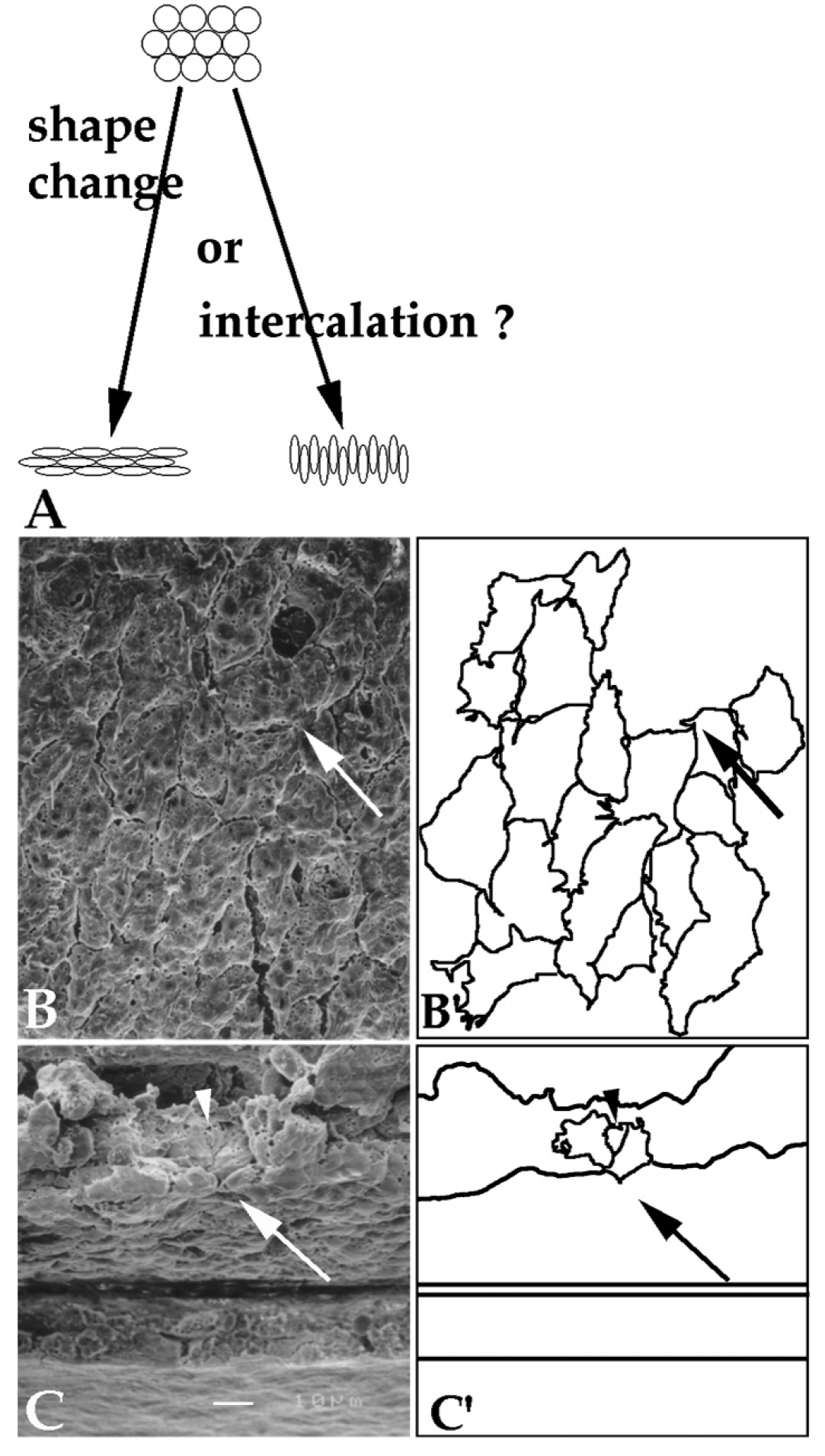 FIG. 5. Cell shapes can be indicative of morphogenetic mechanisms. If a cell sheet lengthens by cell shape change, then the cells must