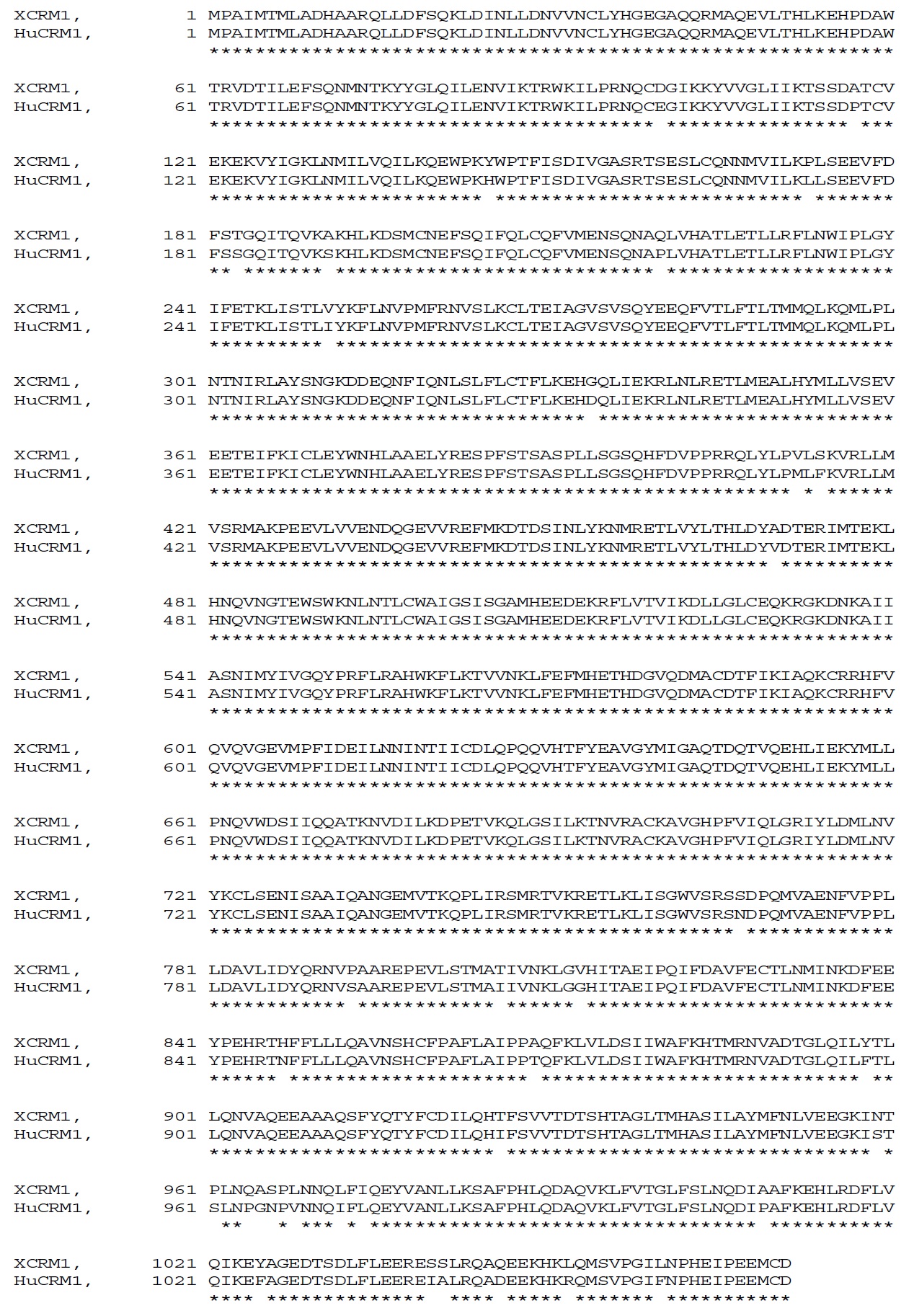 sequence was compared with that of the human CRM1. Stars indicate amino acid identity.