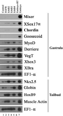 Genes referenced: egfr en2 erbb2 erbb3 erbb4 myod1 sox2 tbxt