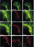 Brain exposed to the recombinant soluble DCC receptor (mDCCFn-2) and double labeled for acetylated a-tubulin (green fluorescence) (G)