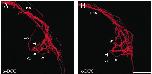 (J and K). Some axons extended ventrally into the VC but then turned about and coursed dorsally (arrowheads) (L). Axons were also observed