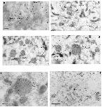 to the germinal granules. Solid arrows point to either the cloud (A and D) or the silver-enhanced gold particles (B, E, and F). Open arrows