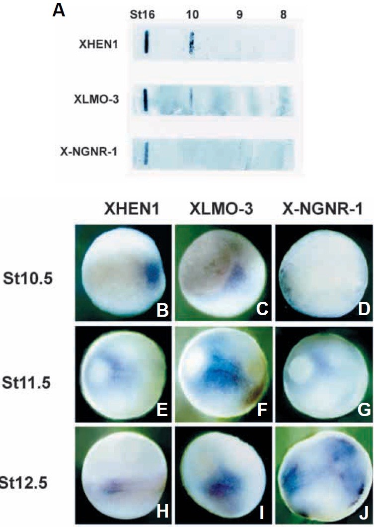 Fig. 3. Spatial and temporal expression of XHEN-1 and XLMO-3