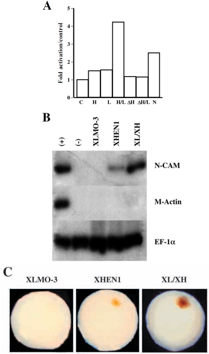 gene. C, control, reporter alone; H, 20 mg XHEN1; L, 20 mg XLMO-3;
