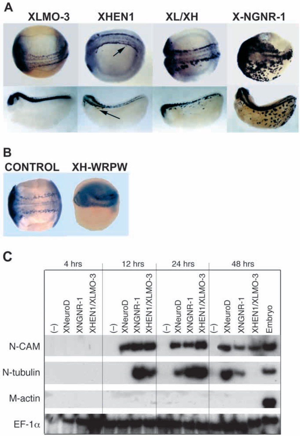 during early neurogenesis. (A) Detection of XHEN1, XLMO-3 and