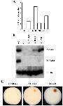on glucose or galactose X-gal plates (galactose plate is shown here). The blue color