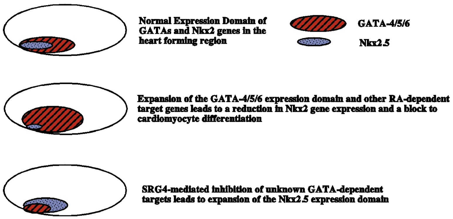 cardiomyocyte differentiation can be repressed. Inhibition of GATA-dependent gene expression results in an expanded pattern of Nkx2.5