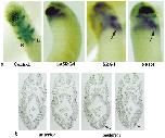 FIG. 5. Ectopic targeted expression of SRG4 results in an expanded pattern of Nkx2.5 transcription. Examples are shown of embryos