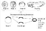 Fig. 1. Dissection of explants and construction of ectodermal wraps to assay for glomus specification. Explants of developing glomus/glomus anlagen/presumptive pronephric mesoderm were removed from donor embryos. The precise region of tissue explanted depended on the stage of donor embryo used, and is described in the Materials and Methods above. (Diagrams of stage 11, 13, 14 and 29 embryos adapted from Nieuwkoop and Faber, 1994.) Each explant was then placed between two stage 9 animal caps, forming an ectodermal wrap. The wrap was allowed to heal and cultured until control donor embryos reached stage 33/34. Explants were subsequently analysed by RT-PCR for the presence of glomustissue. A, anterior explant; M, middle explant; P, posterior explant.