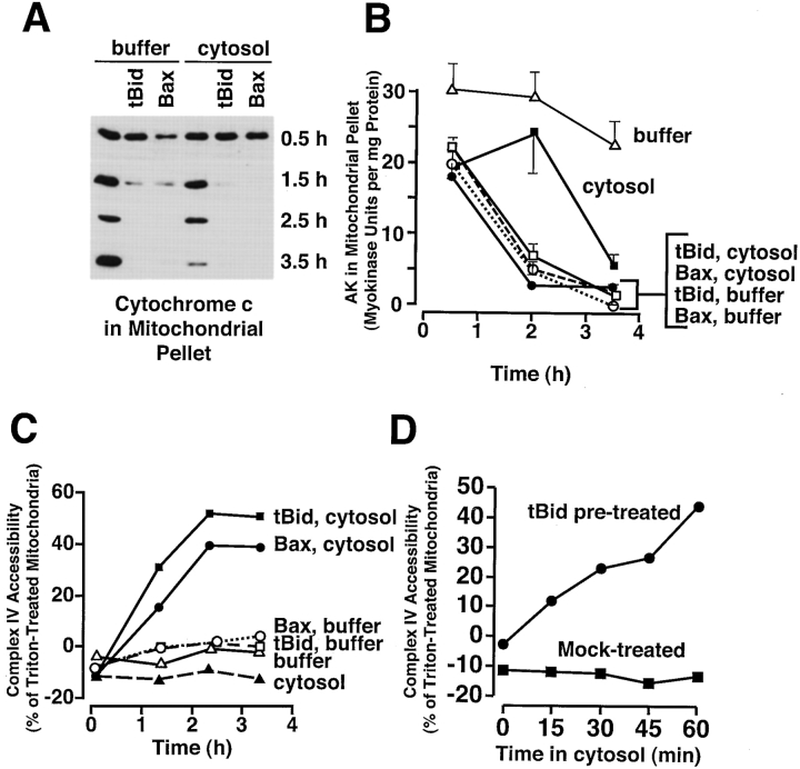 The pro-apoptotic proteins, Bid and Bax, cause a limited permeabilization of the mitochondrial outer membrane that is enhanced by cytosol.