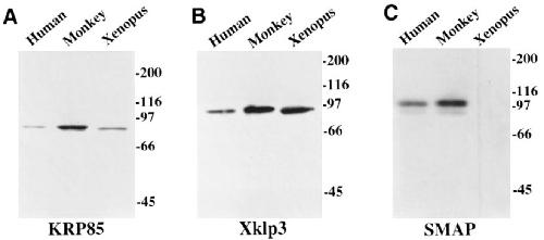 subunits. (A) K2±4, a monoclonal antibody which recognizes a KIF3A homologue (KRP85) in sea urchin KRP85, cross reacts