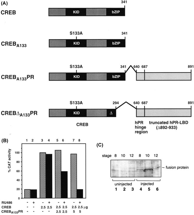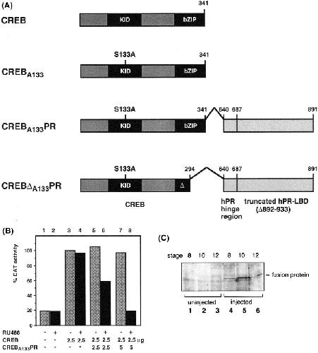 dominant-negative CREBA133 and leucine zipper mutant CREBDA133, respectively, were fused to the ligand binding domain of the human progesterone