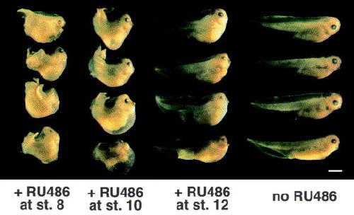 Treatment at stage 8 resulted in strong spina bi®da and shortening of the anteroposterior extension, whereas treatment at stage 12 led to stunted embryos with