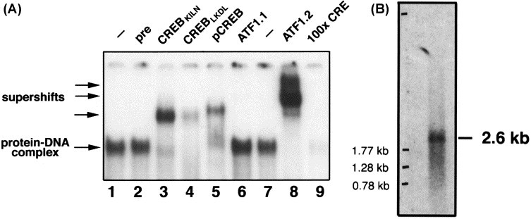 abolished bandshift signal (lane 9). (B) Northern blot analysis showing a speci®c 2.6 kb band representing Xenopus CREB mRNA.