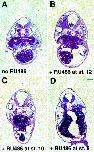 Fig. 5. Histological analysis of transverse sections at the level of the otic vesicles in the hindbrain. Note the slightly enlarged neural tissue and the decreased amount of somitic structures that is found consistently in injected and RU486-treated embryos (panels B, C and D). Injected, untreated embryos (panel A) did not show any phenotypic changes as compared to wild-type embryos. Scale bar: 100 mm.