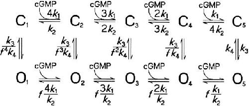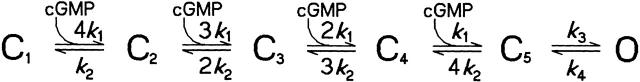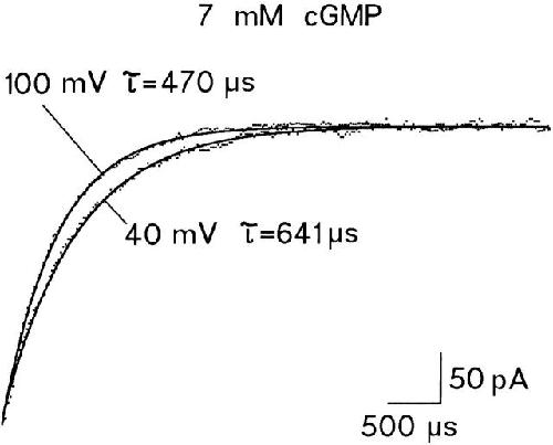 Karpen, Gating kinetics of the cyclic-GMP-activated channel of retinal rods: flash photolysis and voltage-jump studies. 1988, Pubmed
