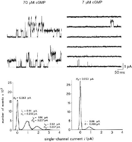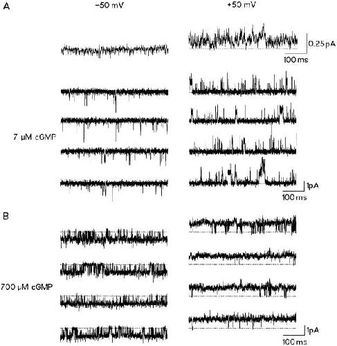 Taylor, Conductance and kinetics of single cGMP-activated channels in salamander rod outer segments. 1995, Pubmed