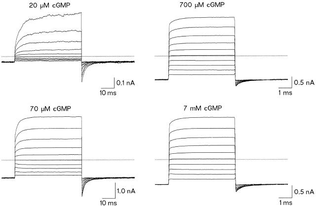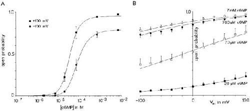 Gating by cyclic GMP and voltage in the alpha subunit of the cyclic GMP-gated channel from rod photoreceptors.
