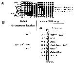 Mapping of Vax2 and Emx1 in the mouse genome. (A) Haplotype and linkage analysis of Vax2 and flanking loci on mouse chromosome 6 through the analysis of the (C57BL/6j × SPRET/Ei)F1 × SPRET/Ei (BSS) backcross (The Jackson Laboratory). Empty squares indicate the Mus spretus allele; solid squares indicate the C57BL/6J allele; shaded squares refer to a genotypes that are not determined. Numbers to the right, between rows, indicate recombination fractions ±SEM and logarithm of odds scores. Columns represent different haplotypes observed on chromosome 6. Numbers below columns define the number of individuals sharing each haplotype. (B) Position of Vax2 on chromosome 6 with respect to nearby markers independently mapped by others on the BSS backcross. Numbers on the left represent approximate genetic distances (in centimorgans, cM) from the most centromeric chromosome 6 marker in this cross. Chromosomal locations of four syntenic human genes, including VAX2 and EMX1, are also indicated.