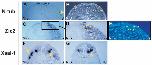 Fig. 2. X-shh and X-bhh overexpression increased the expression of inhibitors and repressed the expression of activators of primary neurogenesis, and reduced neural crest markers without impairing neural development. Embryos were unilaterally injected with 1 or 2 ng of nuc-b galactosidase mRNA as a negative control (b-gal column), full-length X-shh mRNA (X-shh column) or full-length Xbhh mRNA (X-bhh column) plus 100 pg of nuc-bgal mRNA as tracer. They were analyzed at neurula stage by whole-mount in situ hybridization with different neural markers. All are dorsal views (anterior up). The injected side is demarcated by the pale blue staining and is oriented to the left. IS, injected side. NIS, noninjected side. (A-C) Suppression of primary neuron formation as revealed by the differentiation marker N-tubulin (N-tub) in X-shhinjected embryos (B, 90%, n=21 for 2 ng; 79%, n=14 for 1 ng; 57%, n=21 for 0.125 ng) and X-bhh-injected embryos (C, 100%, n=24 for 2 ng; 93%, n=14 for 1 ng; 28%, n=22 for 0.125 ng). Notice the absence of N-tubulin expression from the trigeminal ganglion in the injected side. m, i and s, primary motor neurons, interneurons and sensory neurons, respectively; arrowhead, trigeminal ganglion. (D-F) Expansion of the neural plate as revealed by the general neural marker nrp-1 in X-shh-injected embryos (E, 100%, n=10 for 2 ng) and X-bhh-injected embryos (F, 100%, n=10 for 2 ng). (G-I) Abolishment of Gli3 expression in the posterior neural plate in Xshh- injected embryos (H, 67%, n=21 for 2 ng; 15%, n=13 for 1 ng) and X-bhh-injected embryos (I, 50%, n=26 for 2 ng). Notice that nuc-b-gal dark-blue staining may interfere with the appreciation of Gli3 decrease on the injected side. (J-L) Widespread expansion of Zic2 domain in X-shh-injected embryos (K, 71%, n=34 for 2 ng; 44%, n=18 for 0.25 ng) and X-bhh-injected embryos (L, 80%, n=35 for 2 ng; 32%, n=63 for 0.25 ng). Notice the absence of Zic2 expression from the medial cranial neural crest domain (arrow) in the injected side. (M-O) Reduction and ventral displacement of the Slug domain in X-shh-injected embryos (N, 82%, n=22 for 2 ng; 64%, n=11 for 1 ng; 35%, n=17 for 0.25 ng) and X-bhh-injected embryos (O, 50%, n=6 for 1 ng; 32%, n=25 for 0.25 ng). Arrows, neural crests. (P-R) Downregulation of Krox-20 in r5 and caudal displacement of r3 domain in X-shh-injected embryos (Q, 60%, n=10 for 2 ng) and X-bhh-injected embryos (R, 60%, n=10 for 2 ng). r3, third rhombomere; r5, fifth rhombomere. |