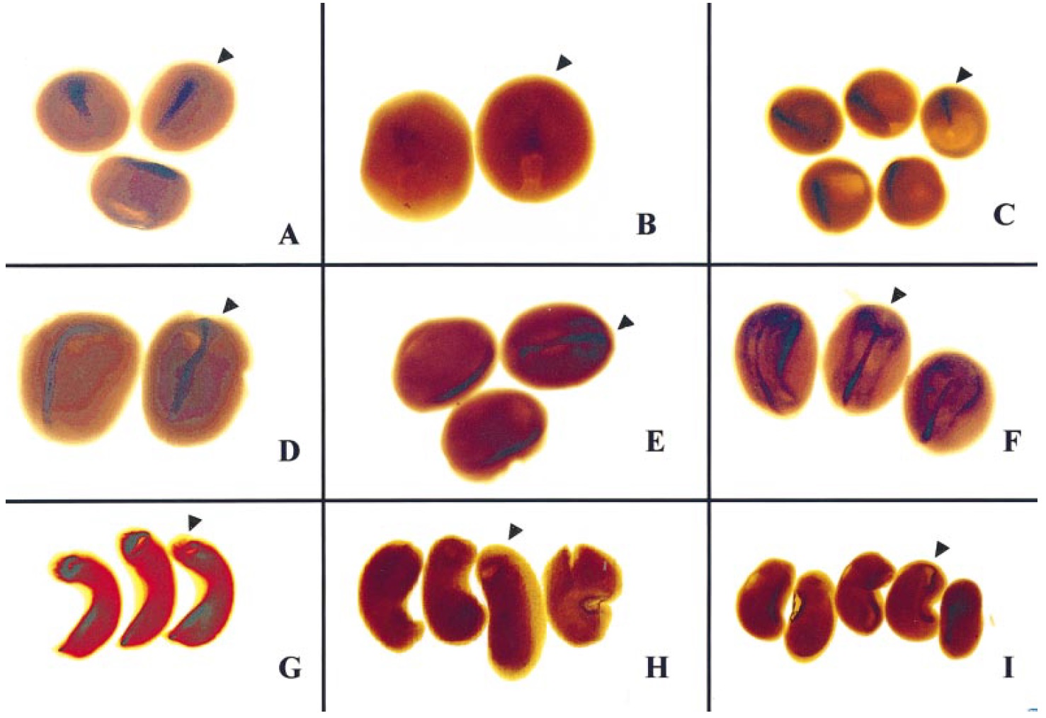 expression (I). Arrow indicates the anterior of the embryos.