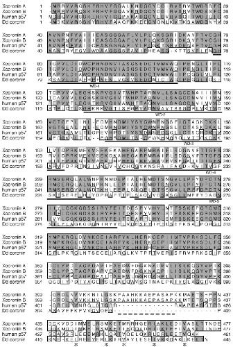 Coronin is a WD repeat-containing actin-binding protein, which was originally identified in the cellular slime mold Dictyostelium. Coronin-null Dictyostelium cells show defects in cytokinesis, cell motility and phagocytosis. Although the existence of coronin in higher eukaryotes has been reported, its function in vertebrate cells has not been elucidated. We cloned a Xenopus homolog of coronin (Xcoronin) and examined its actin-binding properties, subcellular localization and possible functions. Xcoronin consists of 480 amino acids and is 63% identical to human coronin (p57). Bacterially expressed recombinant Xcoronin co-sedimented with F-actin in vitro. The WD repeat domain (residues 64-299) alone did not have any affinity for F-actin. Anti-Xcoronin antibodies reacted specifically with a single 57 kDa protein present in an extract of the Xenopus A6 cell line. Indirect immunofluorescent staining of A6 cells revealed that Xcoronin is present in the cytoplasm and concentrated in the cell periphery in membrane ruffles. During spreading after replating or wound healing after scratching a confluent monolayer, Xcoronin became concentrated in the leading edges of lamellipodia. A GFP-fusion protein of Xcoronin showed a subcellular distribution essentially identical to endogenous Xcoronin. The localization of Xcoronin to the cell periphery was resistant to treatment with 0.1% Triton X-100. The deletion of 63 N-terminal amino acids or of 65 C-terminal amino acids abolished the localization of Xcoronin to the cell periphery. Xcoronin expressed in 3T3 fibroblasts was concentrated to the leading edges of lamellipodia induced by active Rac. Remarkably, expression of a truncated form of Xcoronin (64-299), but not of full-length Xcoronin, significantly decreased the rate of cell spreading after replating and markedly inhibited lamellipodium extension induced by active Rac. These results suggest that Xcoronin plays an important role in lamellipodium extension and cell spreading.