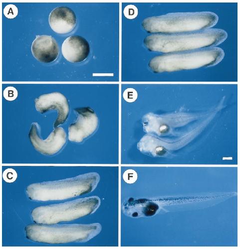 XFGF-20 mRNA at the two-cell stage, photographed when control sibling embryos had reached two stage shown in (F). Scale bars in A for