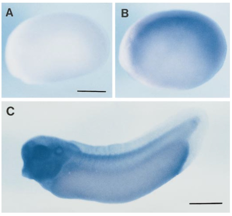 sense probe at the neurula stage. (B) Hybridization with an antisense