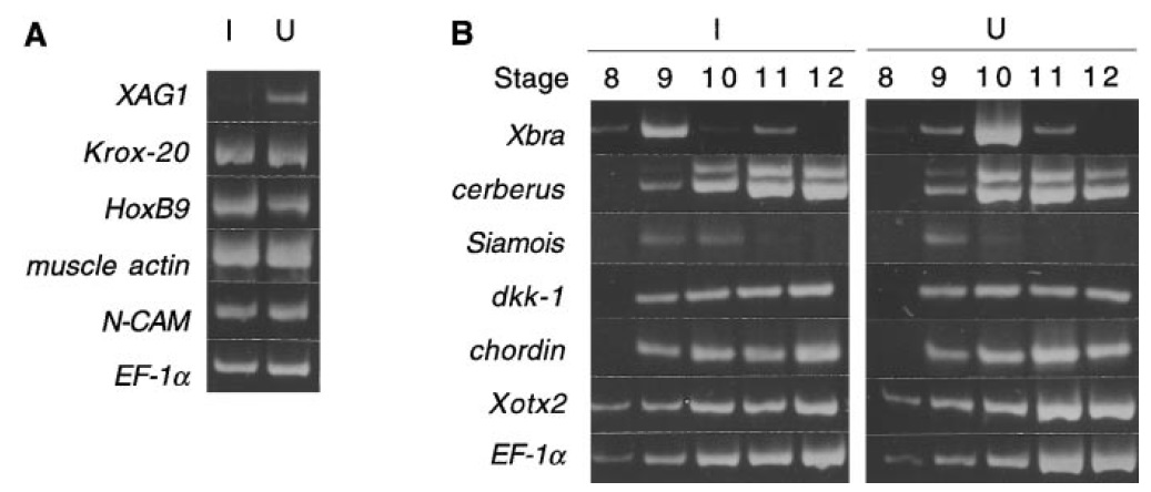stage 25 and total RNA was examined by RT-PCR. The same results were obtained from samples pooled in duplicate. U, uninjected
