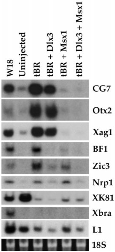 encoding tBR, Msx1, and Dlx3. Animal caps were removed from