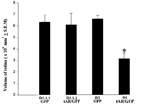 retinas (R) of embryo in which 500 pg tAR mRNA was injected into V2.1.1. The blastomere subsequently was transplanted to the position